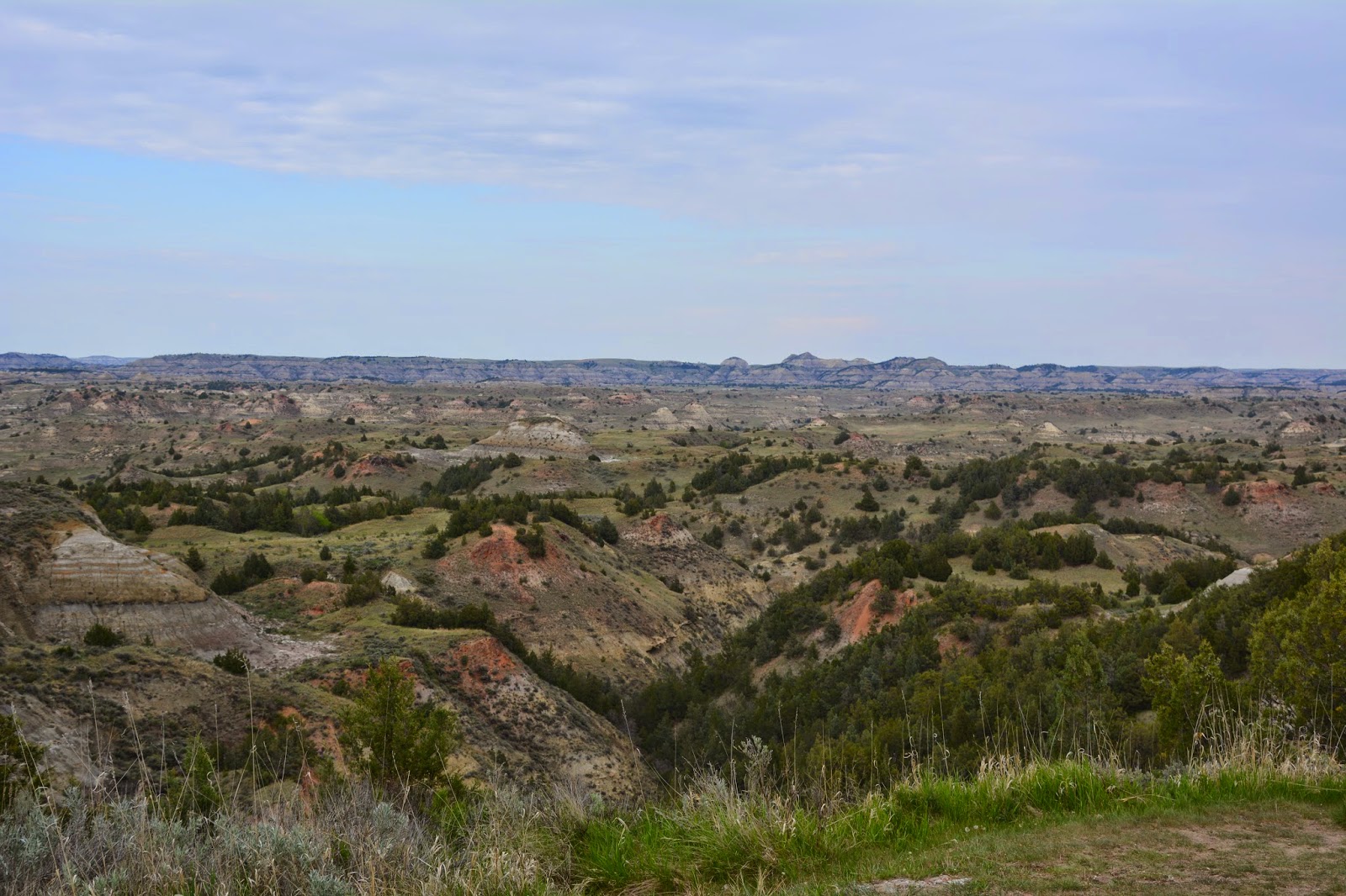 While we were in the area we drove over to the Little Missouri State Park which contains some the most rugged, picturesque Badlands terrain in the state. There we were, driving along the highway, and the oil fields, and all of a sudden the earth open up before us. Here are some pictures of what it looks like from inside the state park.